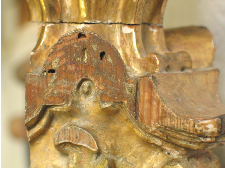 Fehlstelle im Holzträger (Detail).